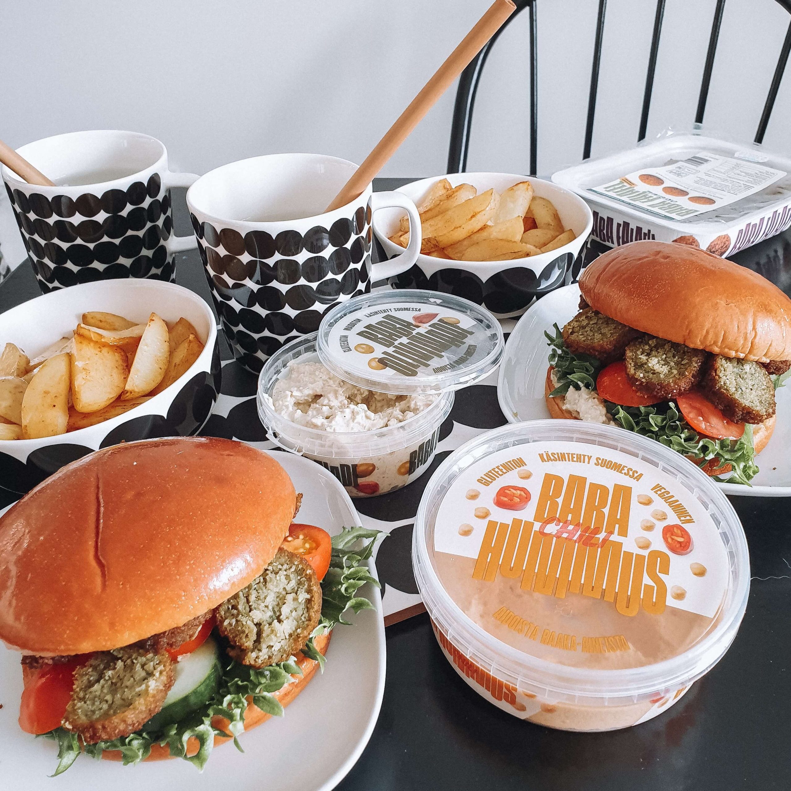 Välillä arkenakin voi herkutella – nimittäin burgereilla! Ja kun itse tekee, niin silloin hampurilaiset eivät todellakaan ole epäterveellistä roskaruokaa. Terveellisempiä burgereita saat valitsemalla esimerkiksi täysjyväsämpylän (tai miksei ruisleipää), sekä väliin paljon terveellisiä kasviksia. Tästä löydät kaksi erilaista ohjetta; kasvisversiossa maistuu falafelit, kun taas perinteisempi sisältää naudanlihapihvin + Baban herkullisia tahnoja.